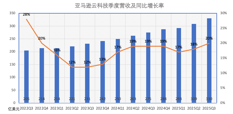亞馬遜CEO安迪?賈西(Andy Jassy)表示:“云業務的增長速度達到了自 2022 年以來的最高水平,同比增長 20.2%,人工智能和核心基礎設施的需求依然強勁。”